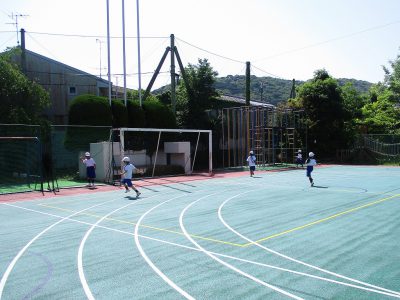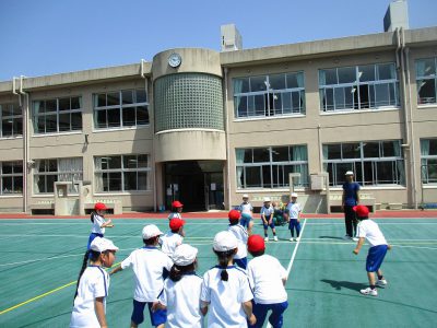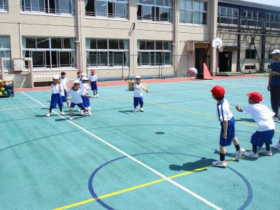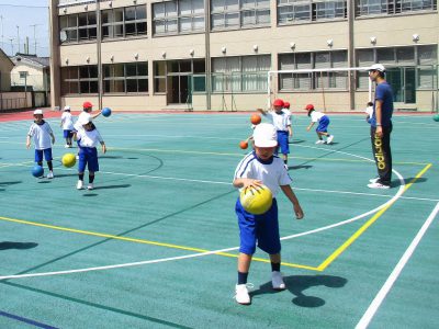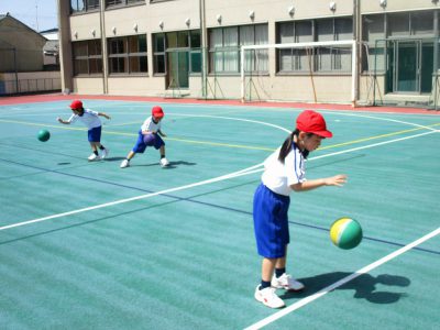 その後は「ボールつき」や「ボール投げ」の練習です。
