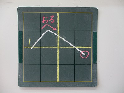 みぎうえに むかって やまを つくり、1のへやから、すべりだいのように 2のへや、4のへやに はいります。