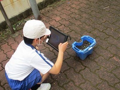 国語の説明文で出てきた「アップ」と「ルーズ」を意識しながら、タブレットで写真を撮りました。