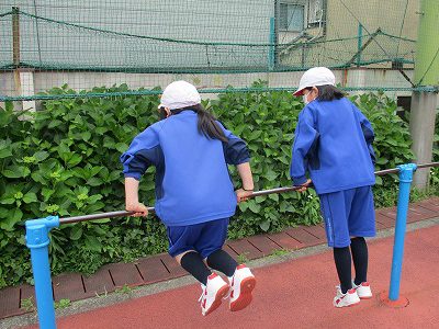 教室で係の打ち合わせをしたり、運動場の遊具で遊んだりして過ごしました。