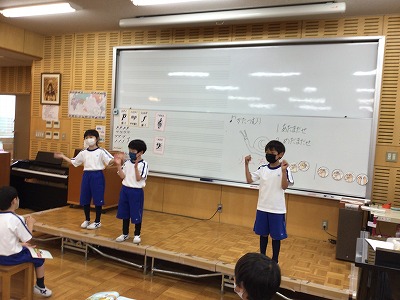 学級活動は、児童会総会に向けて「基本の行い」を確認したり、総会でどんなことがあるのかを知りました。
