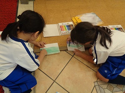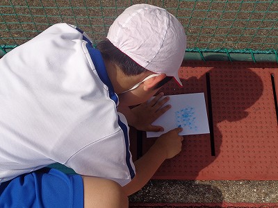運動場や玄関、職員室前など、様々な凸凹を見つけて、写し取っています。
