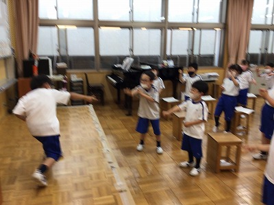 今日は、「♪かたつむり」の歌をもとにして“7つ打ち”のリズム学習を進めました。