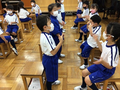 ペアになって、歌う役とリズム役に分かれて行う練習を取り入れました。