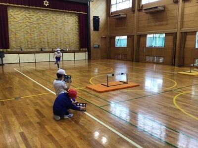 今日のめあてはハードルを飛び越すときにその足の裏が見えること、それからそのときの踏切はできるだけハードルから遠くすること、でした。自分のフォームを写真や動画に撮り、それを見ながらアドバイスし合うことで、授業終わりにはずいぶん低く、また速く飛び越せるようになった児童がたくさんいました。