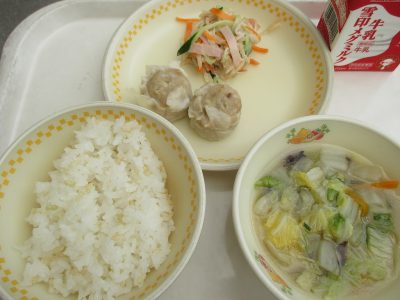 今日の献立は「肉しゅうまい、切り干し大根のサラダ、春雨中華スープ」でした。