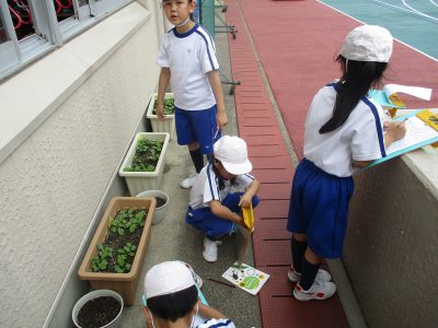 今日は、生活科の観察だけでなく、作文と関連づけて学習を行いました。