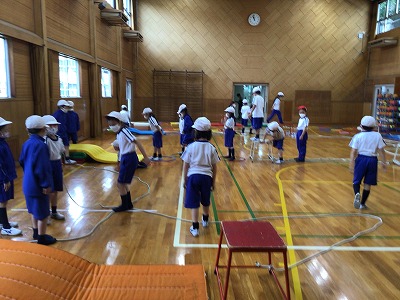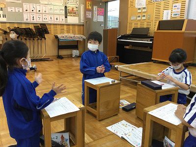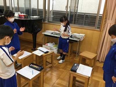 「♪こいぬのビンゴ」を歌と手拍子で楽しく歌うところから学習が始まりました。