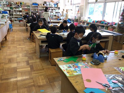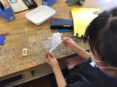 パタパタ動く仕組みに合う、形を見つけて作品を作っていきます。