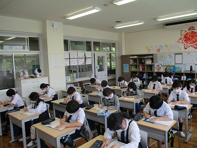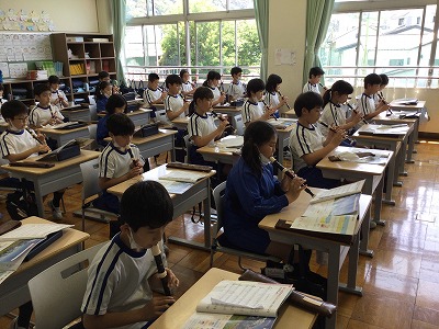帰校後も集中した雰囲気の中、お話を聞いて考えたことやめあてにしたいことなどを振り返り、ノートにまとめました。