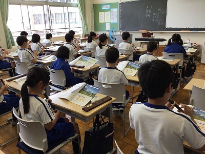 4年生の皆さんの“姿勢”も、いい音の条件に入っています。また、お家での個人練習の成果があらわれ、美しい二重奏が教室に広がりました。