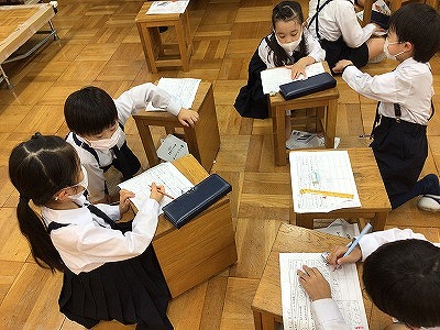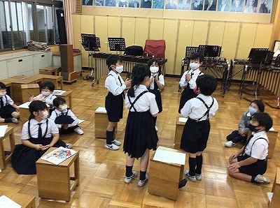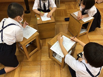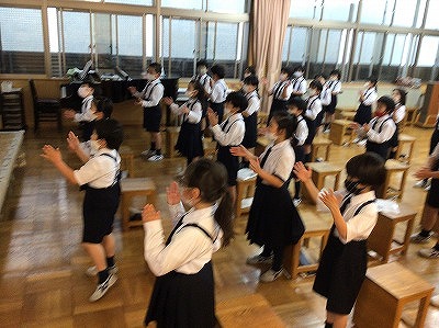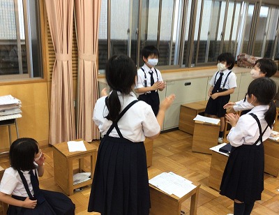 今日は、リズム合わせの学習に、チームで相談した“どうぶつラップ”を発表し合いました。