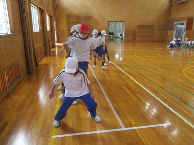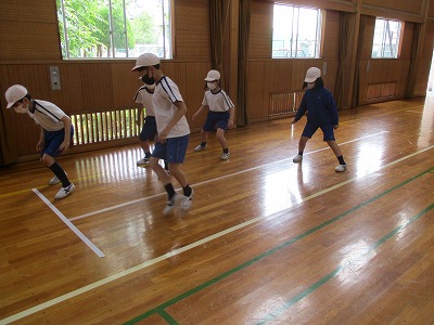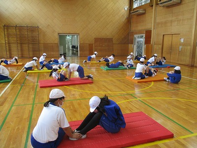 今日は、体育館で上体起こしを測定し、反復横跳び、立ち幅跳びの練習を行いました。、