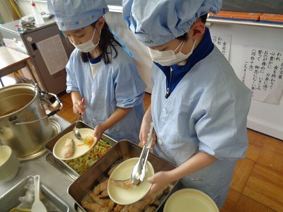 配膳では、丁寧に盛り付けて素早く活動できるようになってきました。