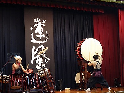 オープニング曲は和のテイストたっぷりの尺八と津軽三味線、和太鼓による演奏でした。どちらかというと「静」の曲でした。会場内の児童もしんみりと聞き入っている様子でした。
