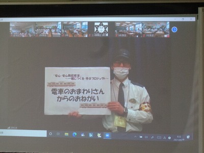 今日は校長先生のお話の後に、鉄道警察の方から電車で危険な目に遭わないためのお話がありました。不審者に遭遇した場合は、まず「にげる」という事をみんなで確認しました。