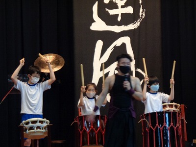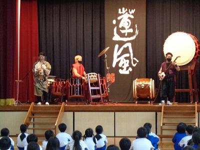 今日は、体育館で和楽器鑑賞会が行われました。生で聞く、大きな太鼓の音には、みんな「心臓がバクバクした!」と感想を出していました。