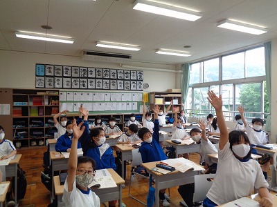 5間目は国語です。今日から「聞きとりメモの工夫」という単元に入りました。普段、メモを取るのはどんな時だろう?という質問に、たくさんの手が上がりました。