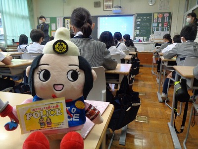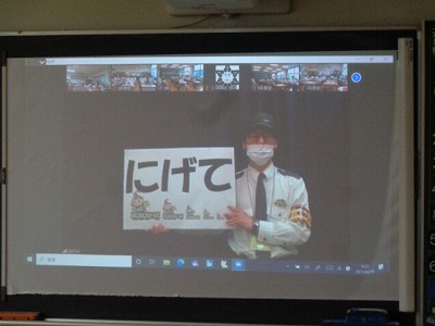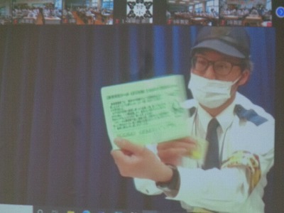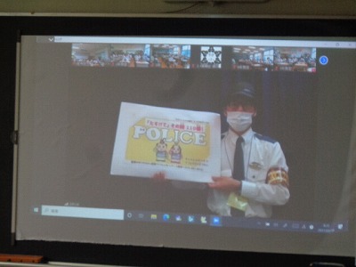 今日は特別に、京都府鉄道警察隊の方が本校に来られ、オンラインで全校生にお話をしてくれました。