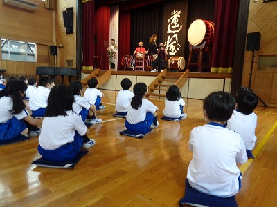 演者さんのお話と演奏を聴き、圧倒される子ども達です。