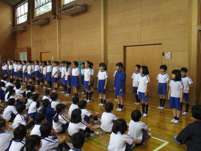 そしていつもの給食の時間に、体育館でお弁当を食べました。
