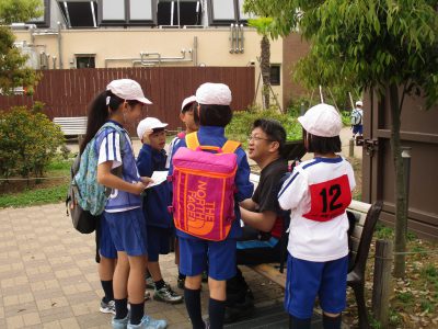 ウォークラリーのポイントでは、先生から質問やお話があったり、シールをもらいました。