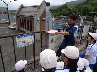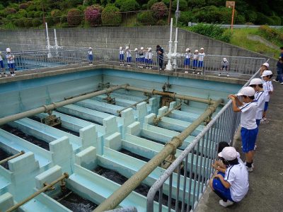 水の流れる音、注入される薬品のしずくの音を自分の耳で聞き、また、一つの役割の「池」が最高で14も並んでいるのを自分の目で確認し、広い浄水場施設内を自分の足で歩き……と机上の学習だけでなく、体験を伴って五感を通して学ぶ貴重な機会を得られました。