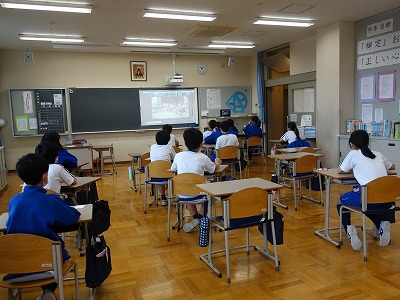 これら4名がいない中で、今年度もリモートでの総会ということで、代表発言者3名がカメラの前でスタンバイしました。他の児童も、万が一、代表発言者が自分の考えを整理できないようなことがあったら、緊急で自分の意見が言えるようにスタンバイしていました。そのため、会が始まると、ともに教室内は程よい緊張感で包まれました。
