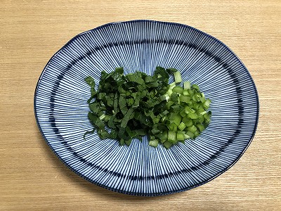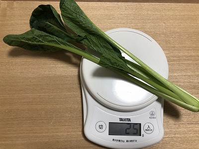 ①小松菜をきれいに洗って、1cmの大きさに小さく切ります。