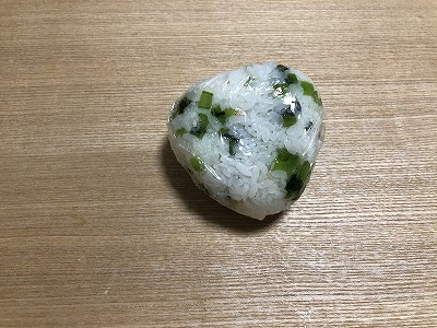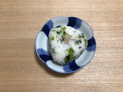 「あおなごはんおにぎり」をふりかえりましょう。これは給食でも出たメニューでしたが、覚えていましたか?朝ごはん、昼ごはんにぴったり「小松菜・しらす・ごま」が入ったまぜごはんです。かんたんに調理できるように考えています。