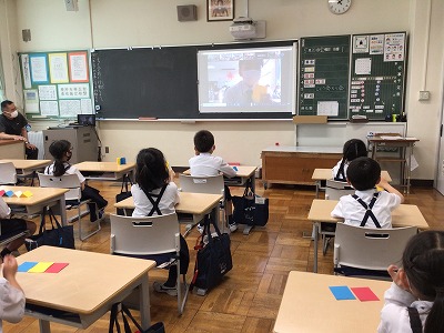 今日は全校で「児童会総会」がオンラインでありました。