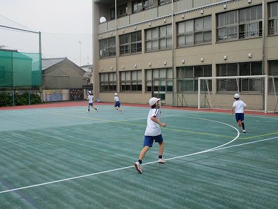 マラソンは、小学校グラウンドを4周走っています。