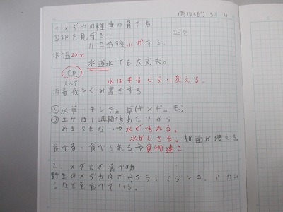 教科書で学習したメダカの飼い方の復習をしました。