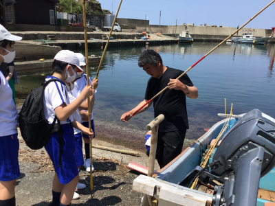 漁師さんから実際の漁具と、その使い方を教えてもらいました。