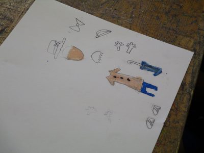 図画工作では、「ジャリおじさんのさんぽ道」の学習に取り組んでいます。