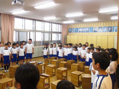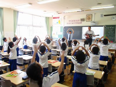 「大きな栗の木の下で」「きらきら星」「小さな世界」などを英語で歌いました。