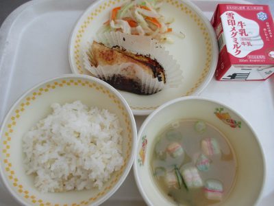 今日の献立は「鰆のみそマヨネーズ焼き、もやしの胡麻あえ、てまり麩の味噌汁」でした。