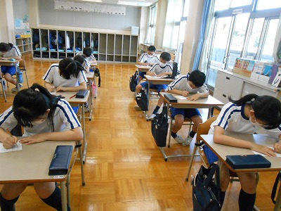 1校時は、月影総合の時間です。6年生は「戦国時代」について発表準備をしています。