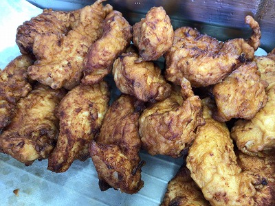 しょうゆを合わせた出汁に、朝から漬け込んだ鶏肉に衣をつけて揚げる唐揚げのような料理です。少し茶色が濃くついた揚げあがりの色は、下味のしょうゆでついた焦げ目です。香ばしさが出て、よりおいしくなります。