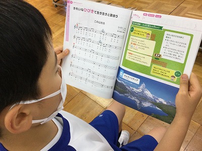 “アルプス”の高原で歌っているように、高音の裏声と低音の地声を使って歌うので、3年生にとっては初めての試みです。