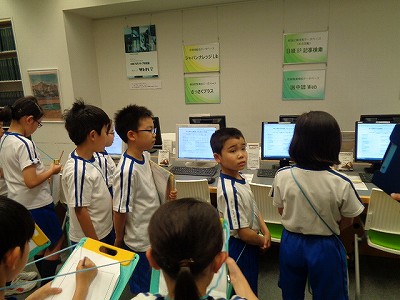 帰りは、暑い中にもかかわらず、足取り軽く帰校しました。学校で、今日の見学を振り返り、まとめをしました。