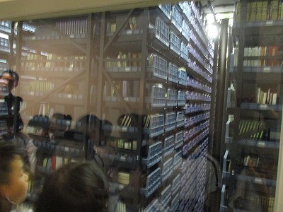 年々増える本の保管のために、電動の書庫は普通の書庫の3倍の量が収納できるそうです。