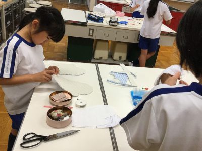 前の時間に行った、ミシンでの布巾縫いが生かせることでしょう。