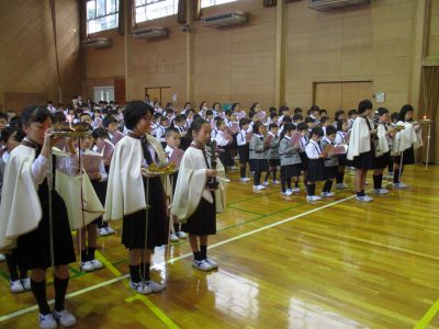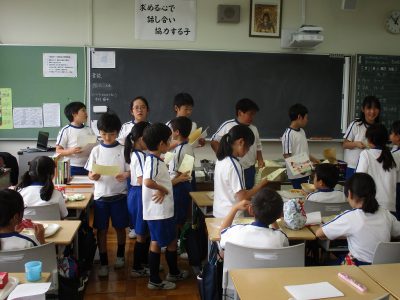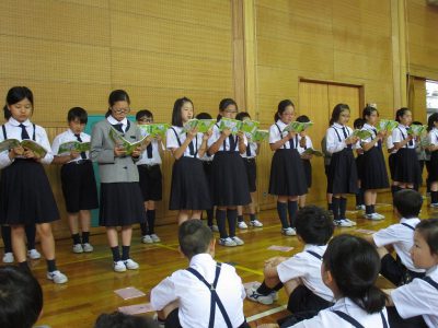 5年生「村の有線放送」6年生「学問のすゝめ」の発表です。