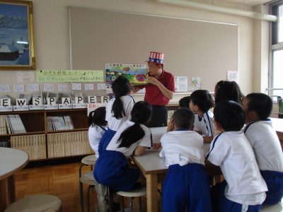 英語の内容を一生懸命理解しながら、二重しかけ絵本を楽しみました。
