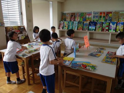 図書室では、世界歴史都市絵本展で韓国の絵本がたくさん紹介されていました。