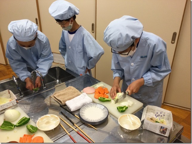 4年ぶりの調理実習に取り組みました。みんなで作る“野菜炒め”です。