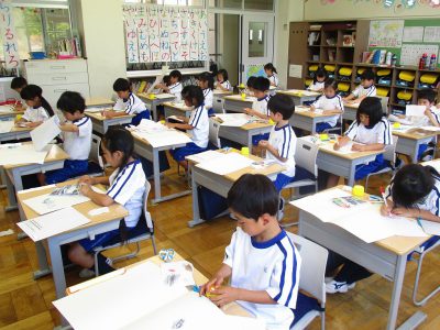 今日の図工は、「凸凹名探偵」の第2回目です。