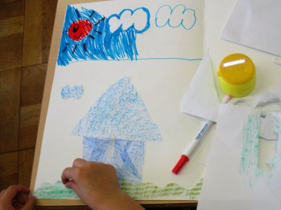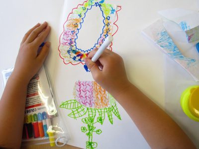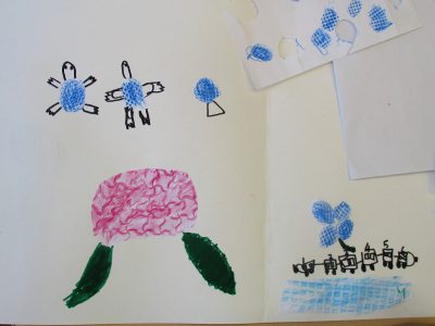 凸凹の形や模様を使いながら、カラーペンで楽しく仕上げていきます。