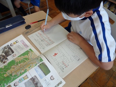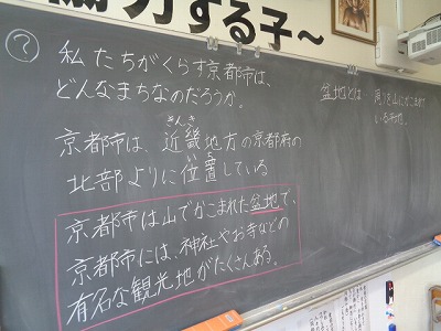 私たちの小学校がある京都市は、どんな街かを教科書を見ながら話し合いました。